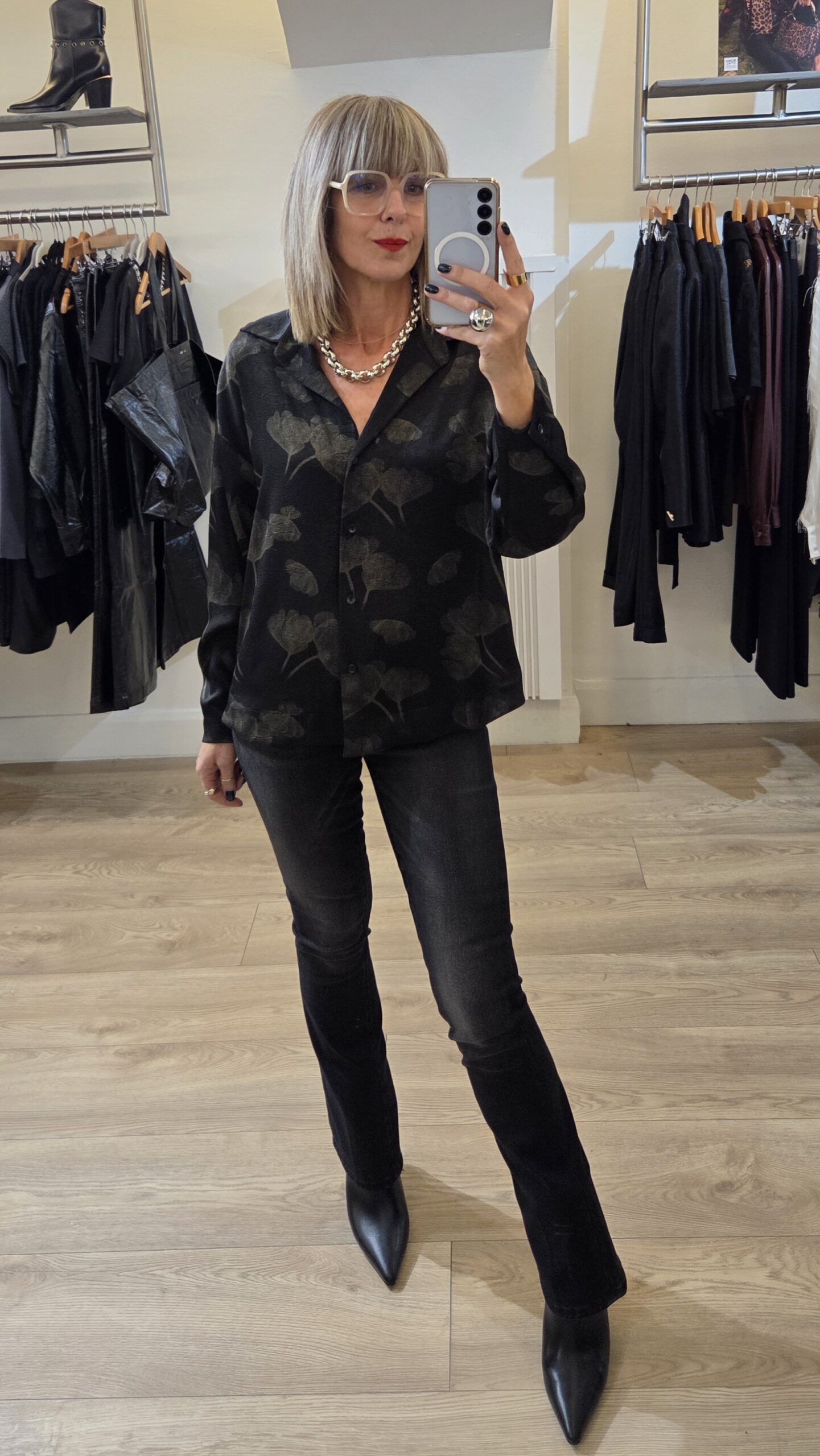 Jeans bootcut with push-up effect made in black denim with dark wash. Regular waist, 5 pockets and wide bottom leg.