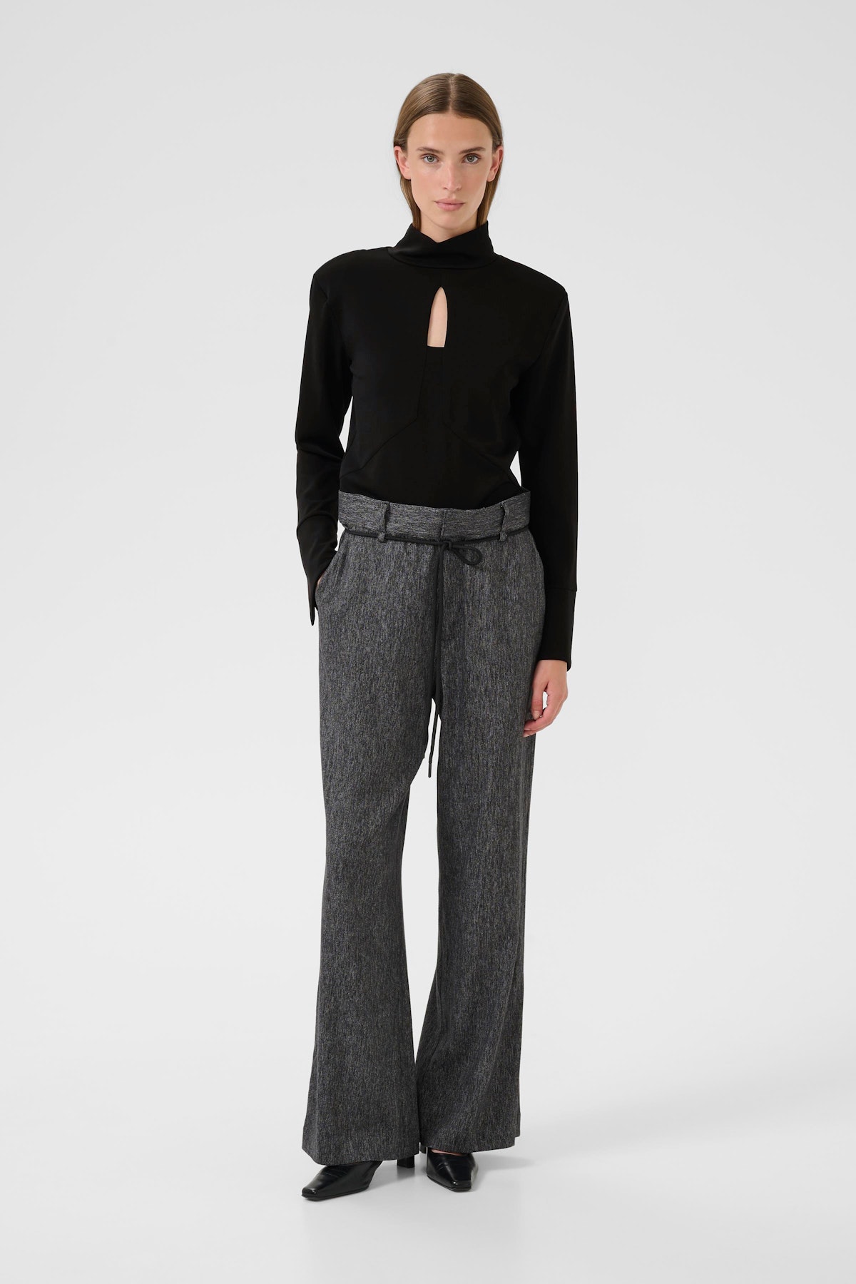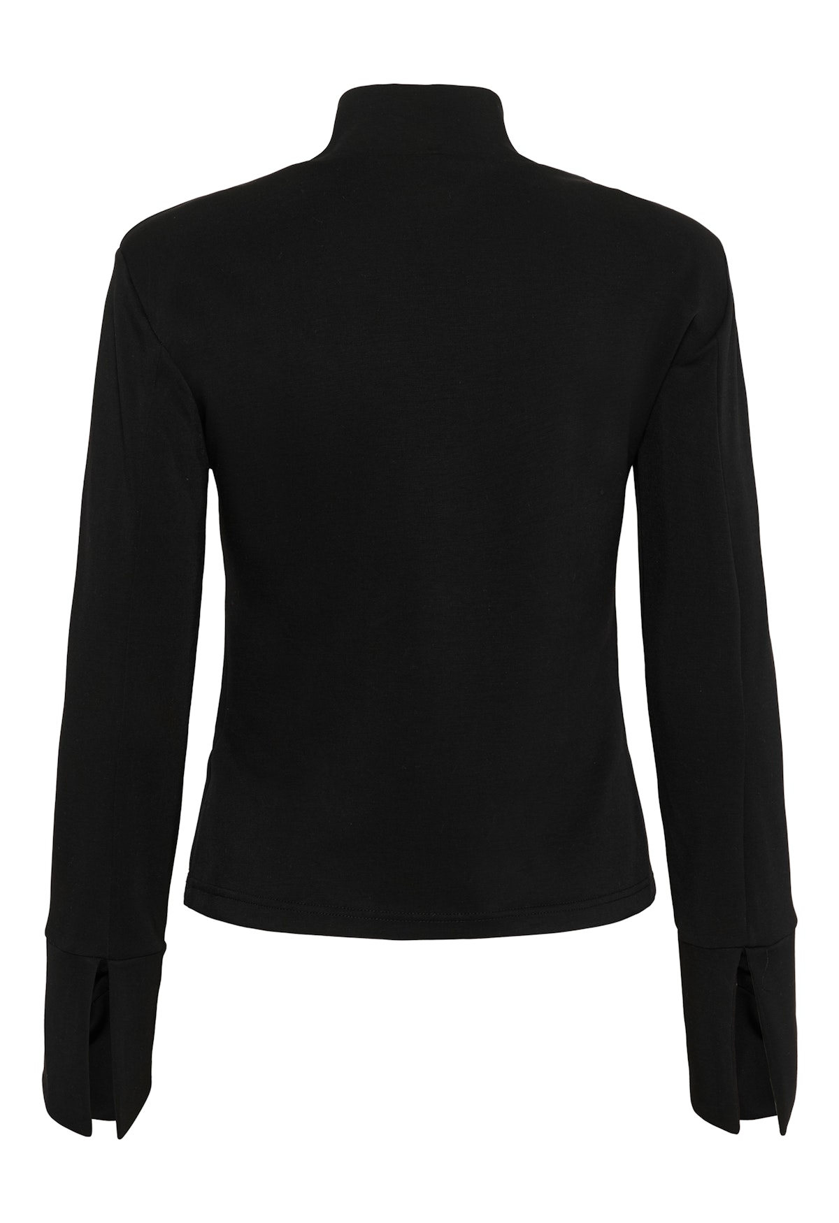 Black Jersey Fitted Turtleneck with Shoulderpad