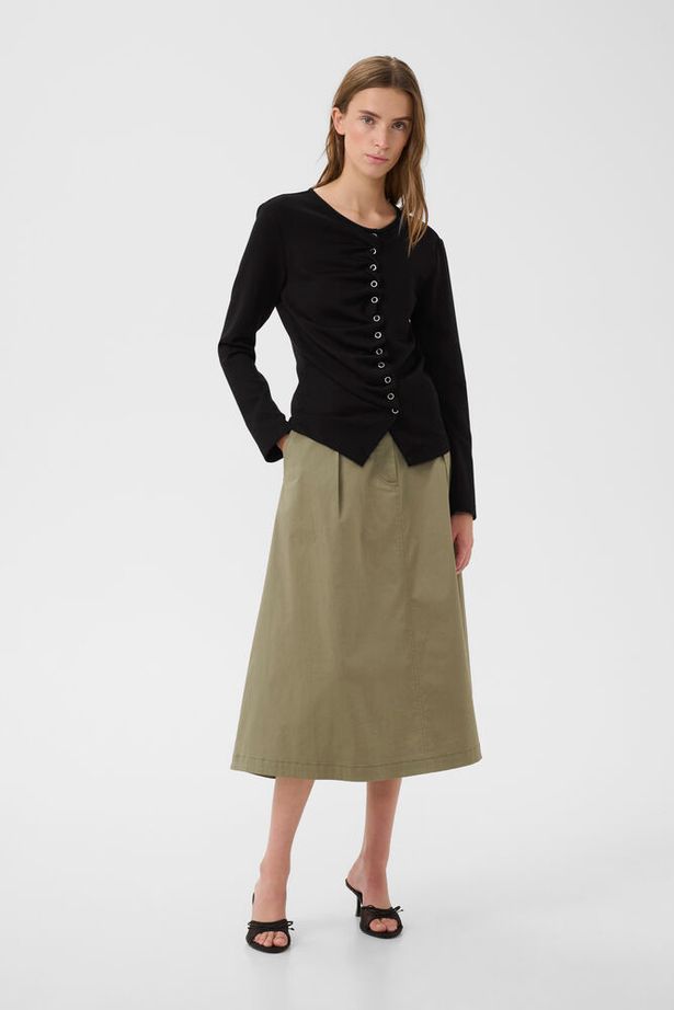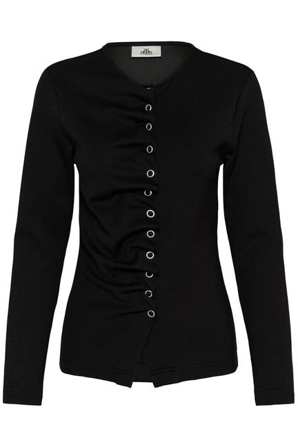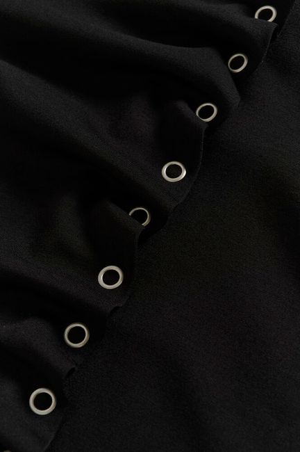 Black Long-Sleeved Top with Front Gathers & Eyelets