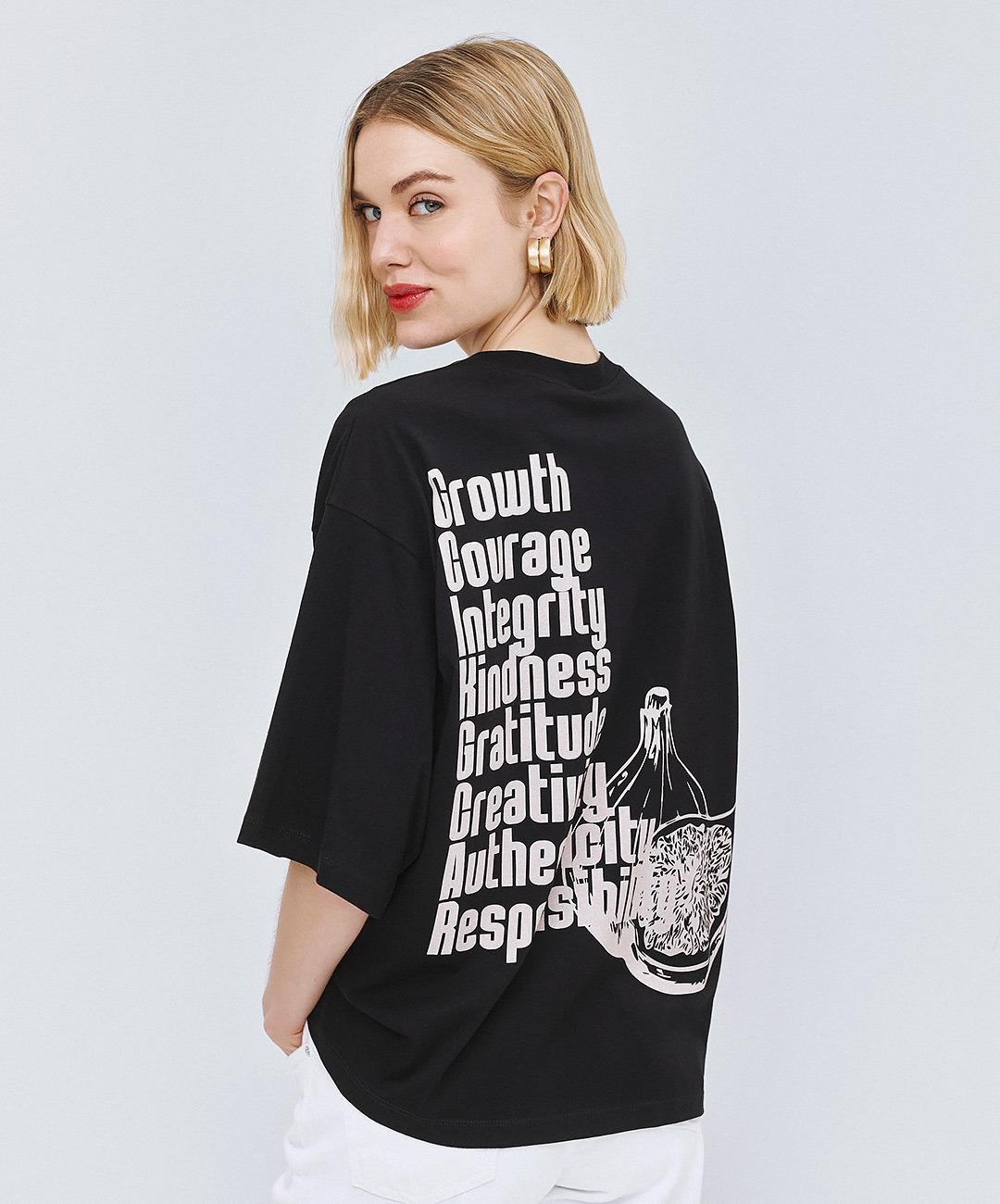 Black Over-Sized T-Shirt with Slogan ‘Growth Courage…..’