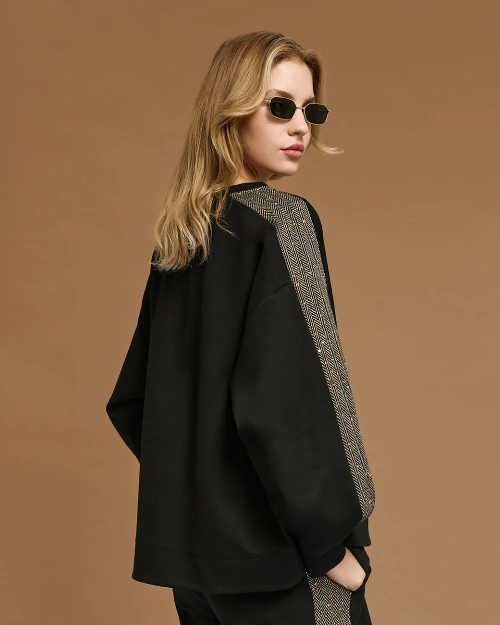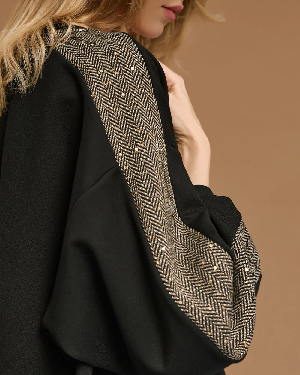 Black Sweatshirt with Herringbone & Sequin Stripe