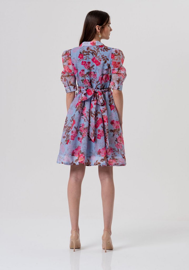Organza floral shirt dress with lining in the skirt. Style this super striking and fun dress for a party or occasion.