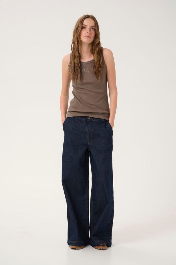 This ribbed tank top offers a slim fit, round neckline, and classic sleeveless cut. Designed for all-day comfort, it features a minimal embroidered detail, perfect for layering or wearing solo for versatile styling.