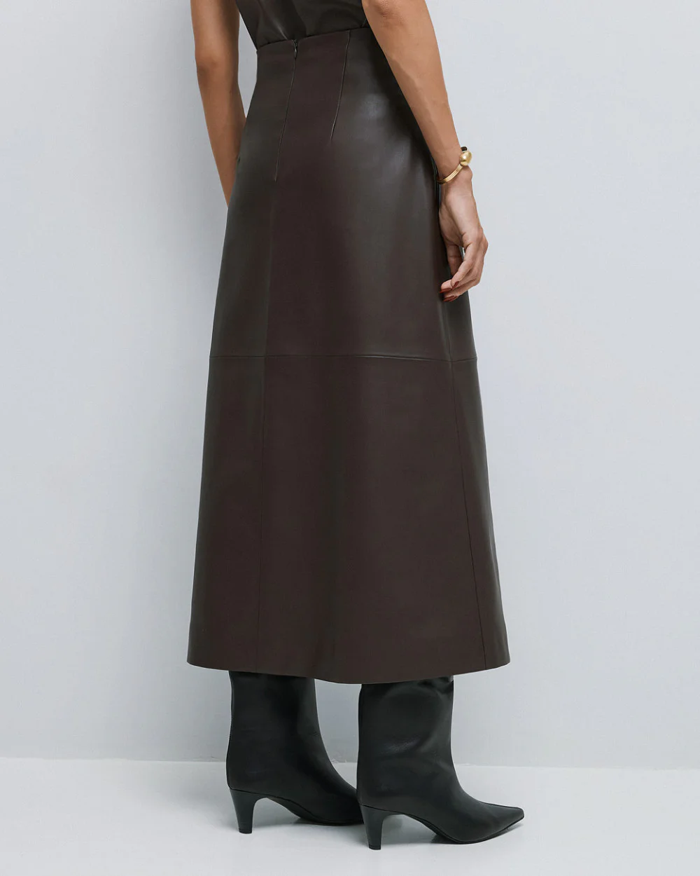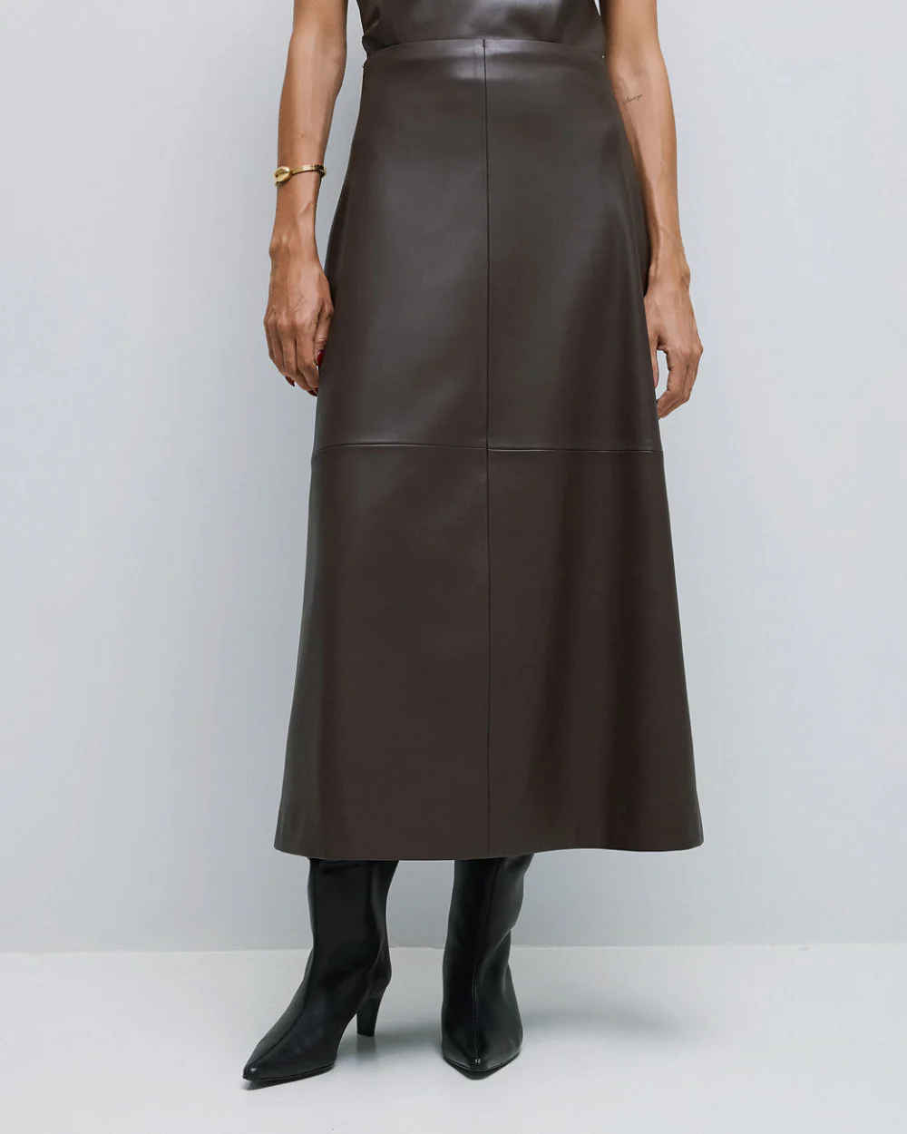 Midi faux leather skirt with inner lining and back zip fastening. Style with the matching top for a complete look.
