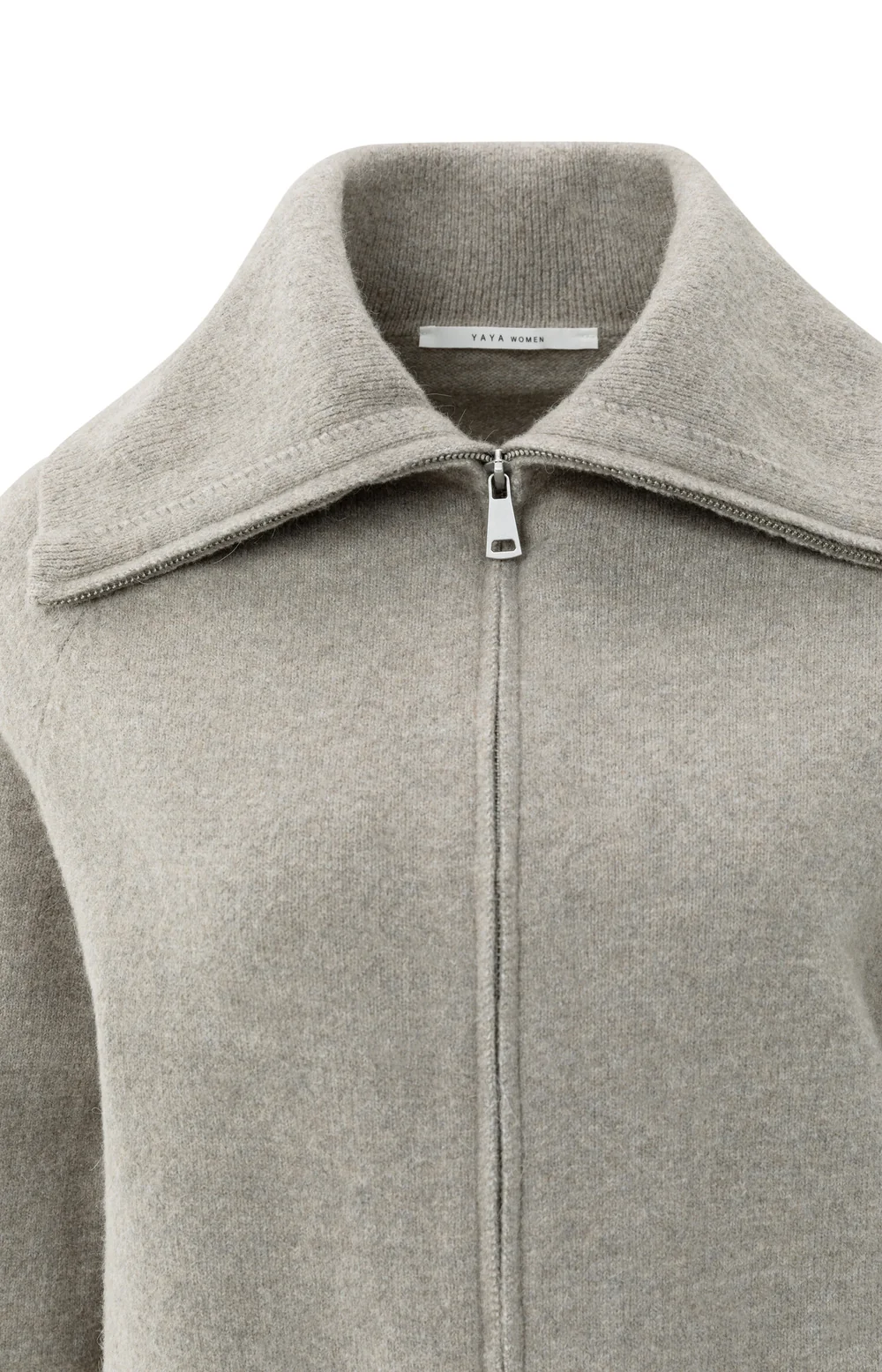 This comfortable cardigan is made from a soft fabric and features a regular fit. The wide collar adds a modern twist, while the front zipper ensures easy wear. Finished with long sleeves and ribbed cuffs and hem for a refined touch. Perfect for stylish layering in between seasons.
