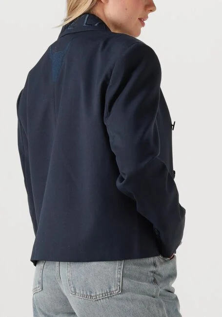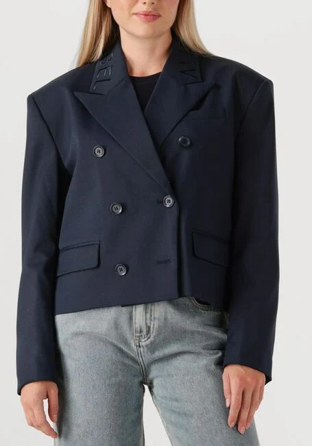 Navy Two-Tone Double-Breasted Boxy Blazer with Logo