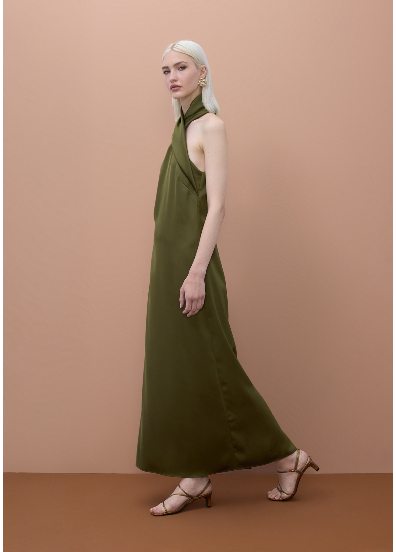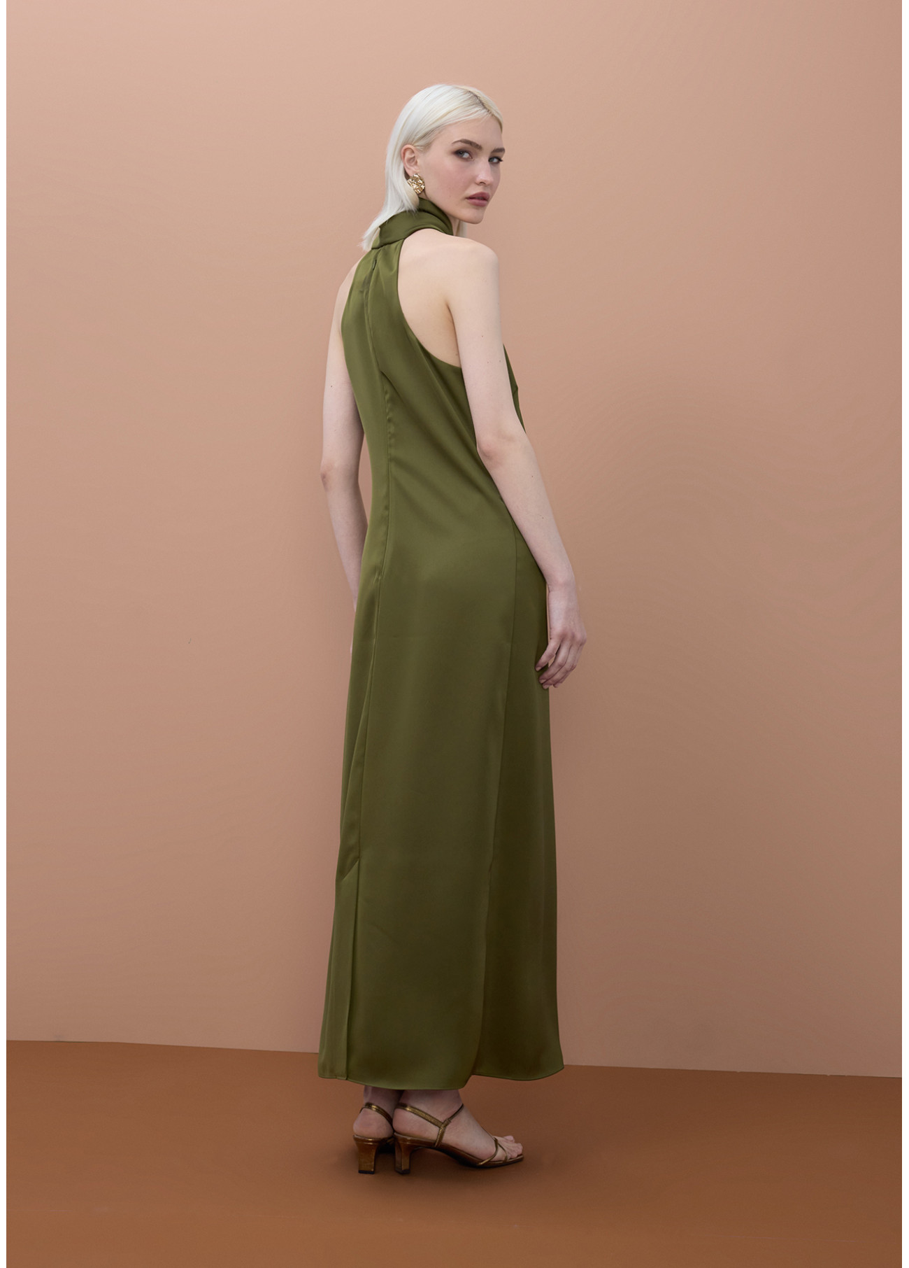 Olive Green Halter Maxi Dress