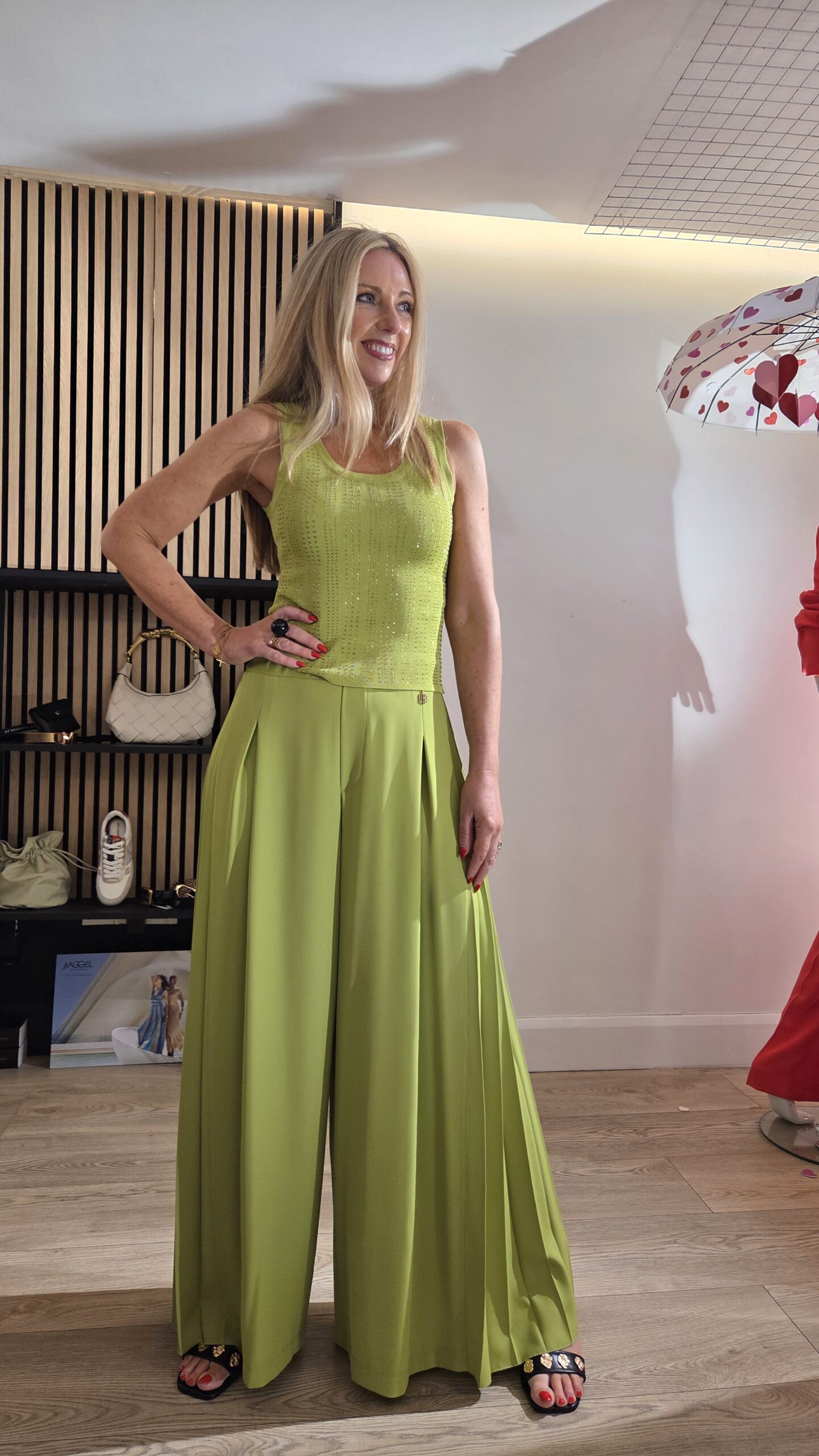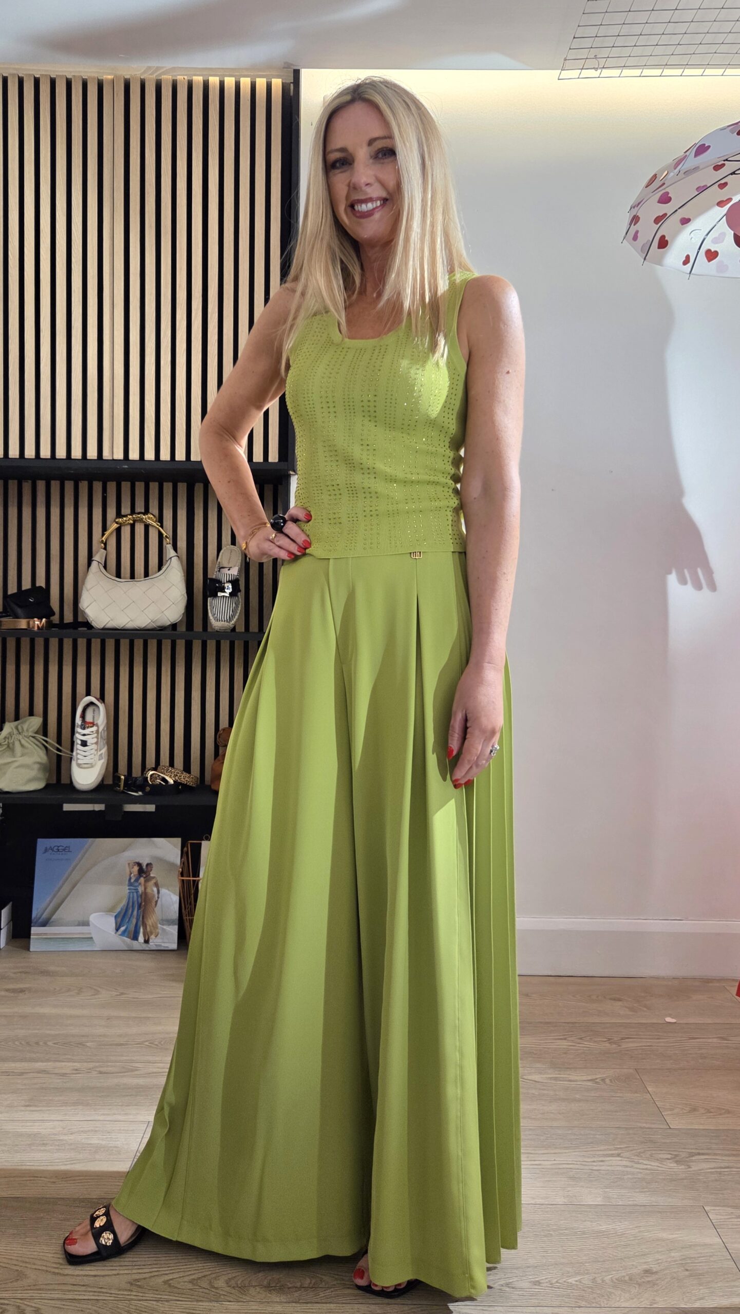 Pistachio Green Pleated Palazzo Trousers