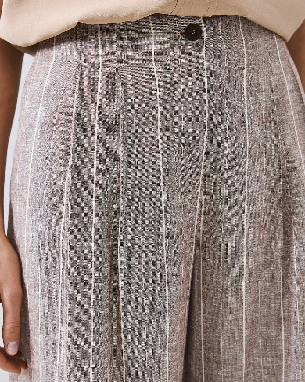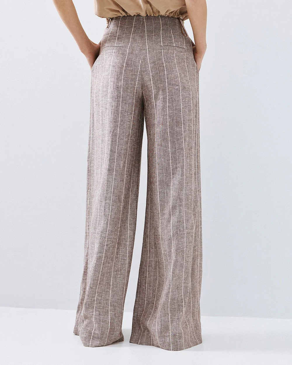 Putty Pinstripe High-Waisted Wide-Leg Trousers