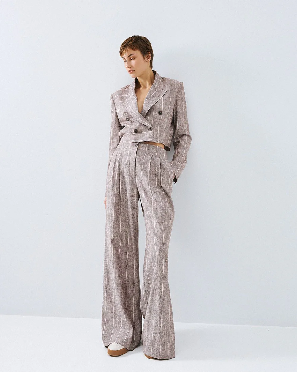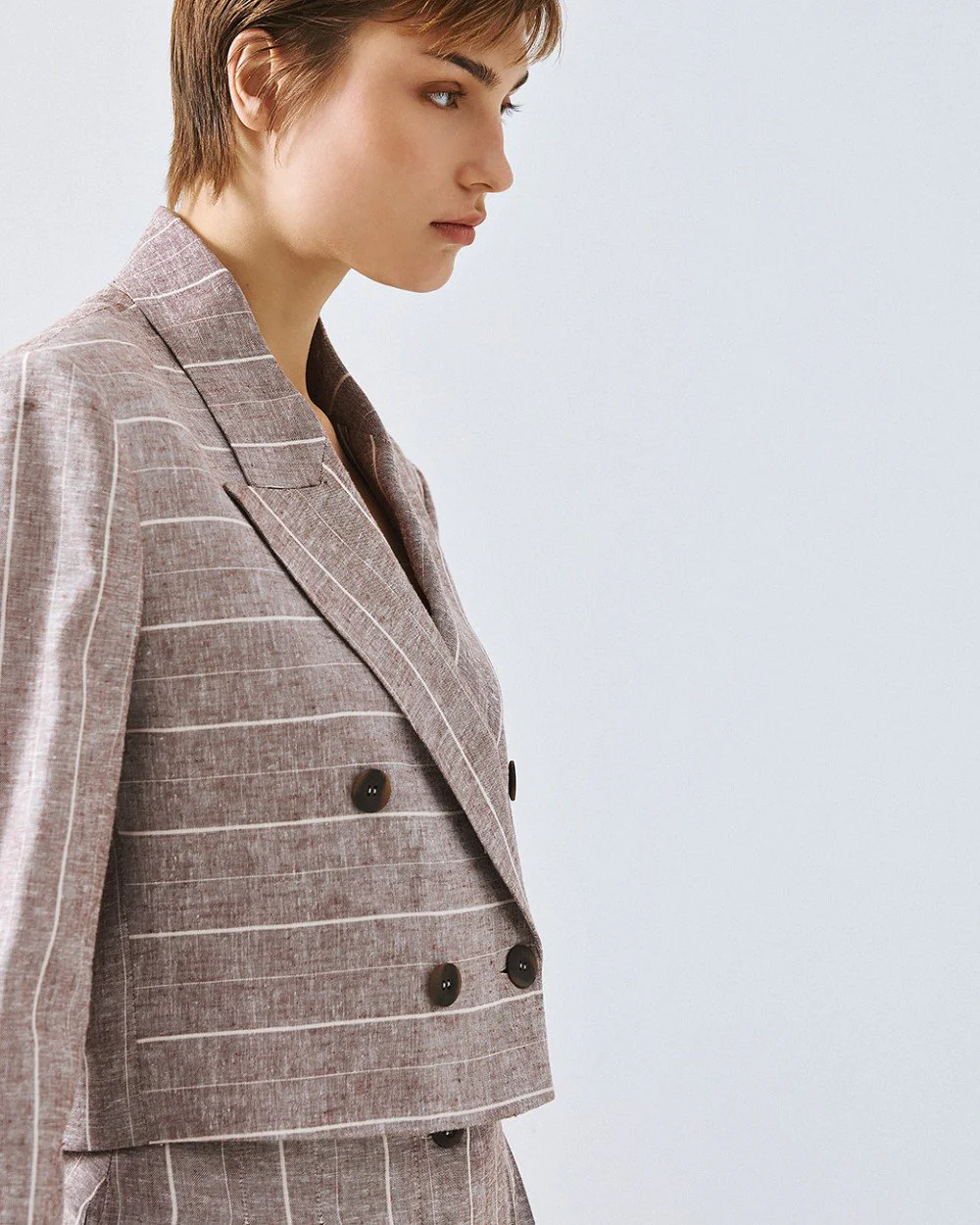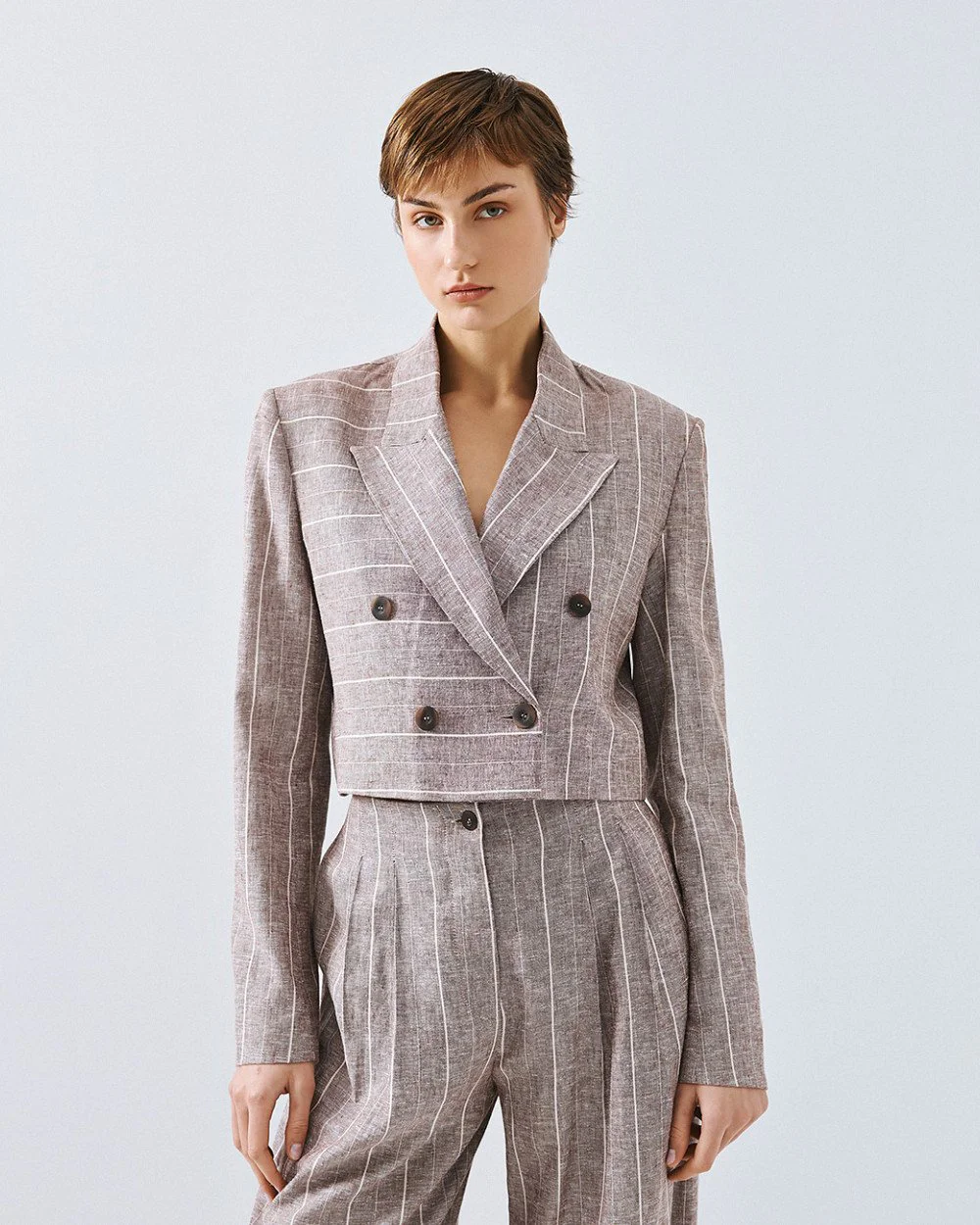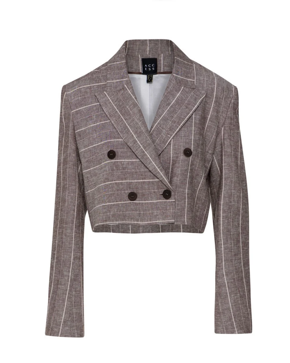 Putty Pinstripe Cropped Double-Breasted Blazer