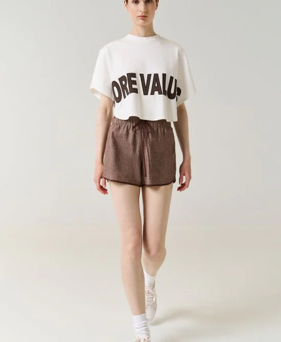 White Cropped T-Shirt with Slogan ‘Core Values’