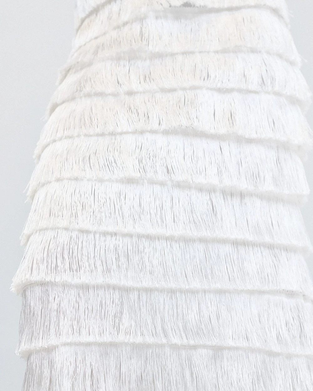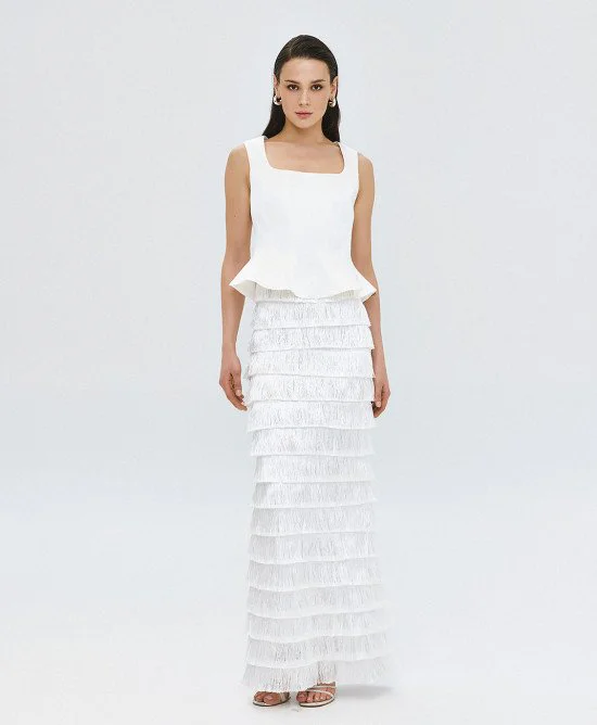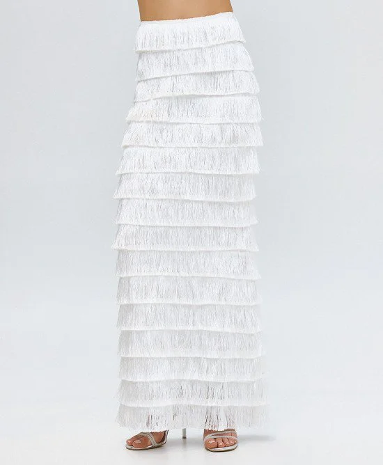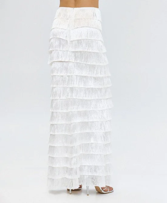White Fringe-Tiered Maxi Skirt