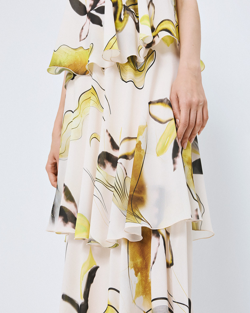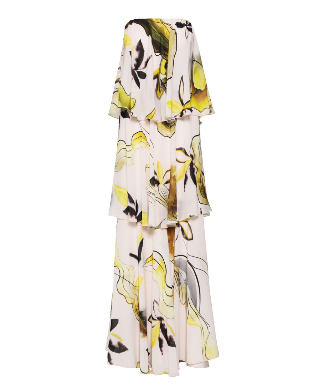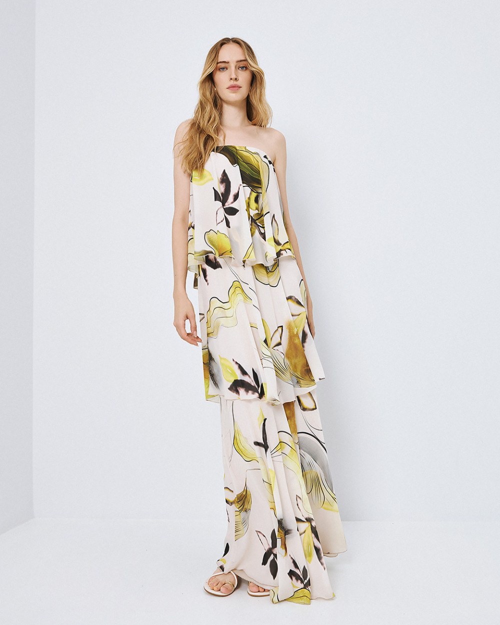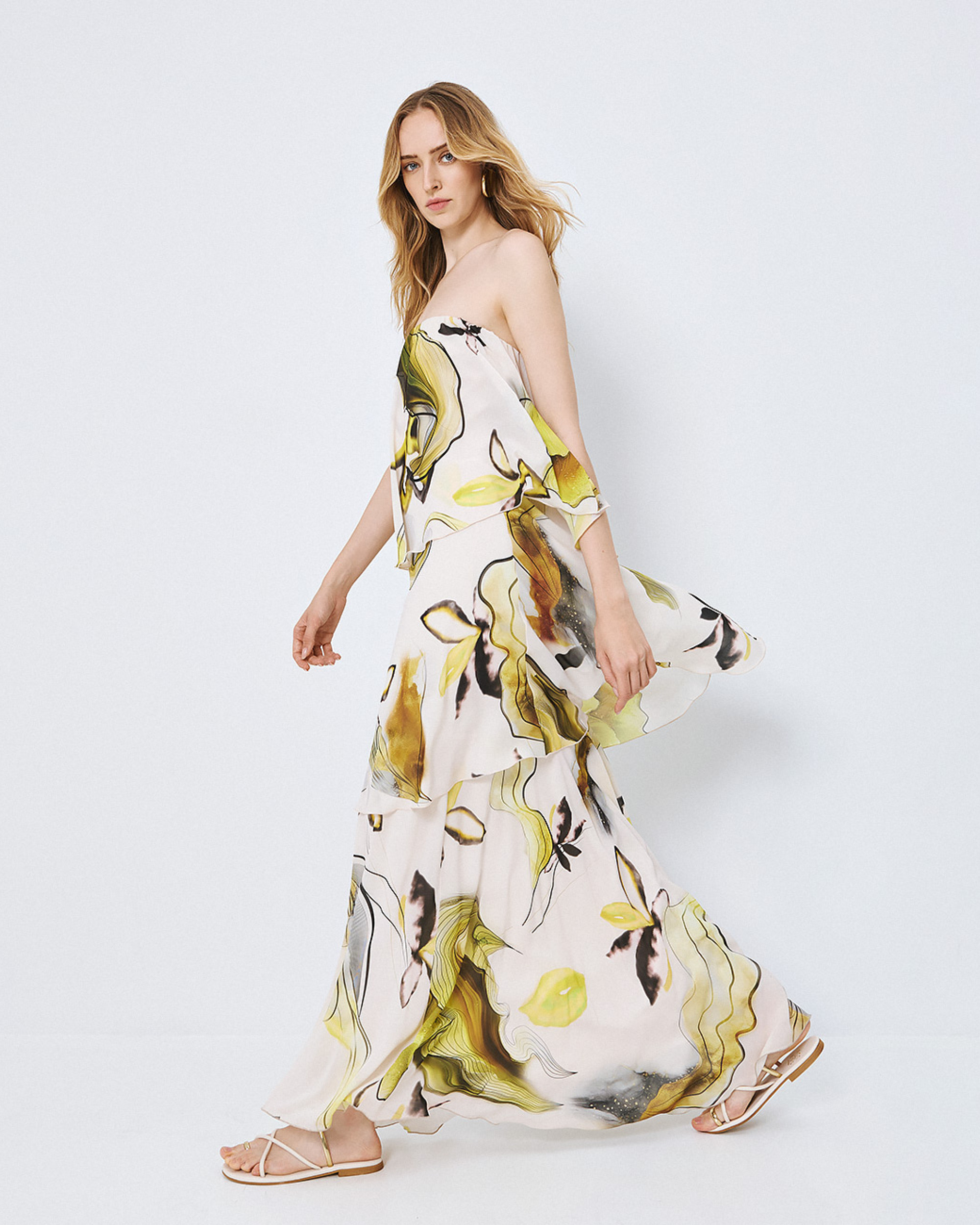 White Tiered Printed Bustier Maxi Dress